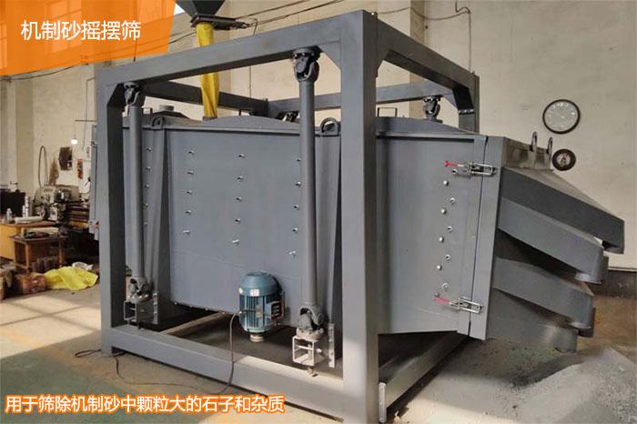 機制砂搖擺篩是配合制砂機使用的一種篩分設備,可以將制砂機制出的混合砂子篩除顆粒大的石子和雜質(zhì),從而提高砂子的質(zhì)量。